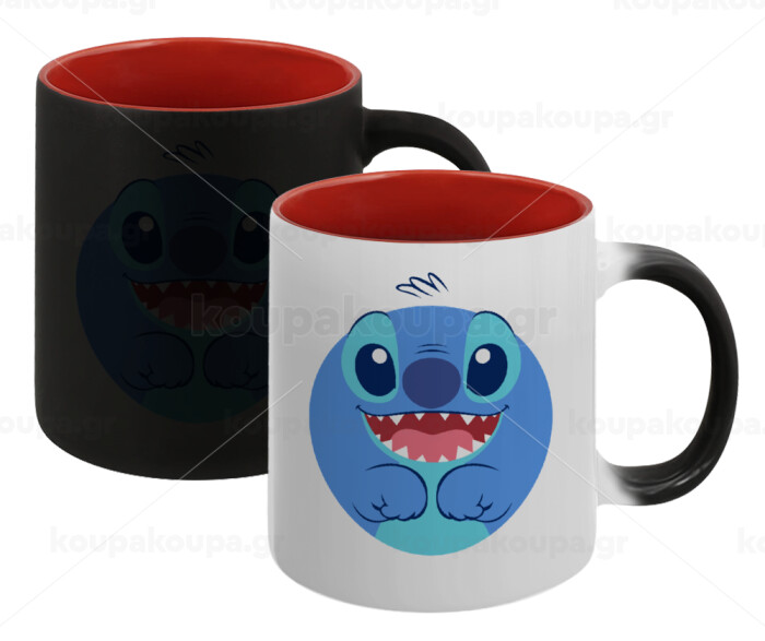 Lilo & Stitch blue, Κούπα Μαγική εσωτερικό κόκκινο, κεραμική, 330ml που αλλάζει χρώμα με το ζεστό ρόφημα