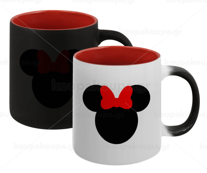 Minnie head, Κούπα Μαγική εσωτερικό κόκκινο, κεραμική, 330ml που αλλάζει χρώμα με το ζεστό ρόφημα