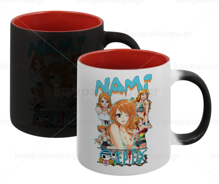Nami One Piece, Κούπα Μαγική εσωτερικό κόκκινο, κεραμική, 330ml που αλλάζει χρώμα με το ζεστό ρόφημα