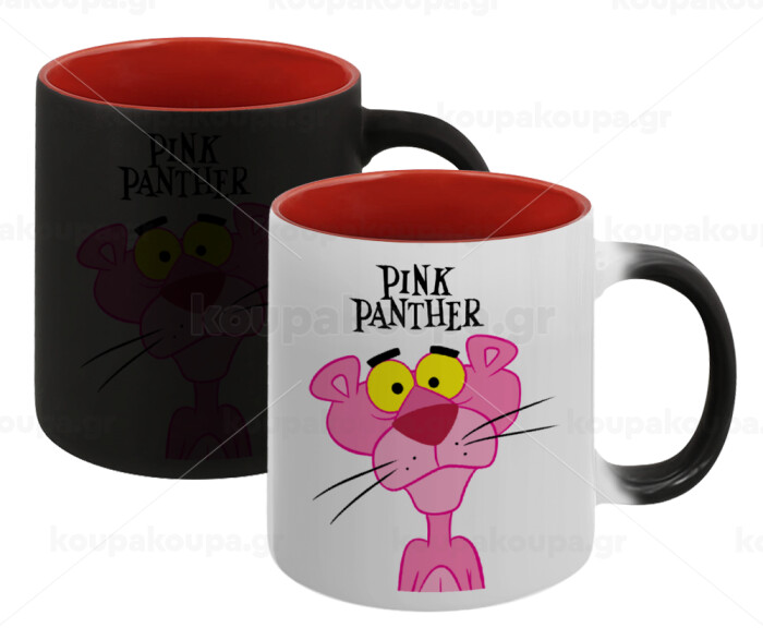 Pink Panther cartoon, Κούπα Μαγική εσωτερικό κόκκινο, κεραμική, 330ml που αλλάζει χρώμα με το ζεστό ρόφημα