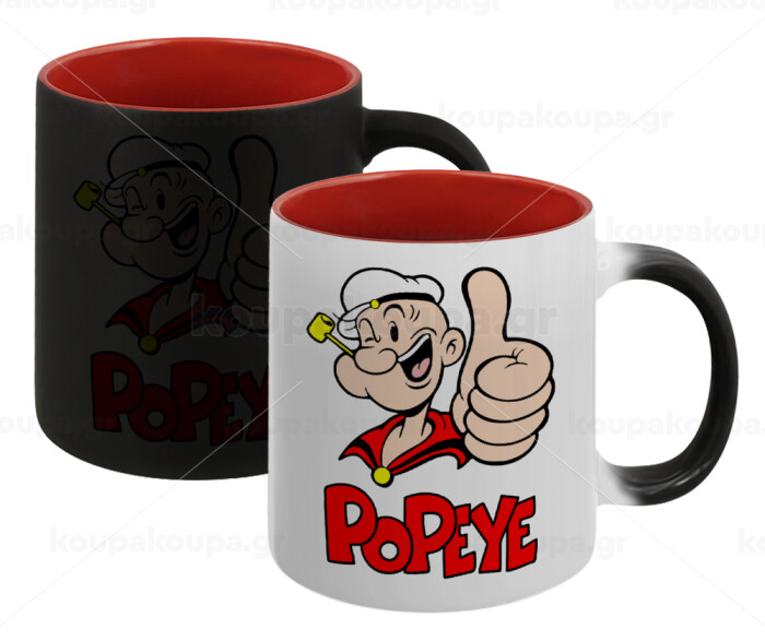 Popeye the sailor man, Κούπα Μαγική εσωτερικό κόκκινο, κεραμική, 330ml που αλλάζει χρώμα με το ζεστό ρόφημα