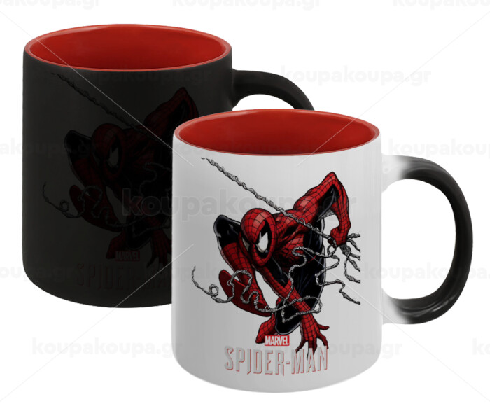 Spider-man, Κούπα Μαγική εσωτερικό κόκκινο, κεραμική, 330ml που αλλάζει χρώμα με το ζεστό ρόφημα