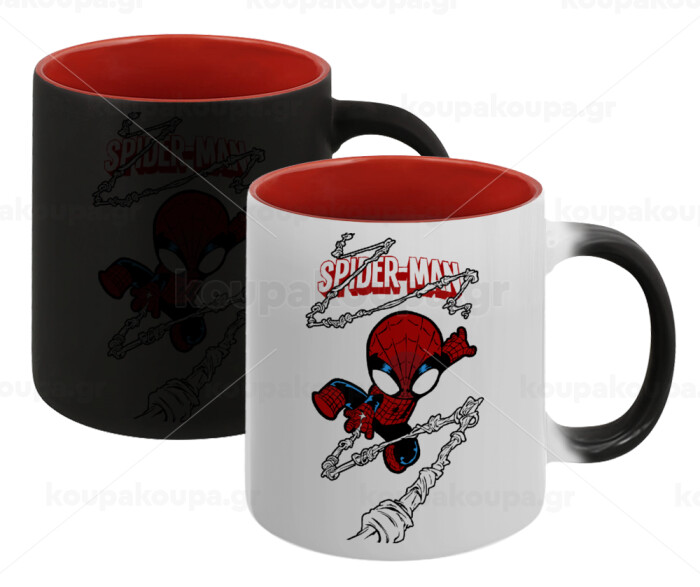 Spiderman kid, Κούπα Μαγική εσωτερικό κόκκινο, κεραμική, 330ml που αλλάζει χρώμα με το ζεστό ρόφημα