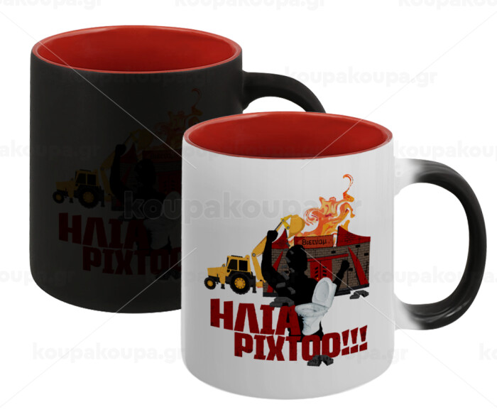 Ηλία ρίχτοοο!!!, Κούπα Μαγική εσωτερικό κόκκινο, κεραμική, 330ml που αλλάζει χρώμα με το ζεστό ρόφημα