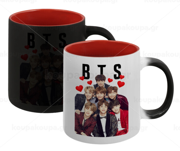 BTS hearts, Κούπα Μαγική εσωτερικό κόκκινο, κεραμική, 330ml που αλλάζει χρώμα με το ζεστό ρόφημα