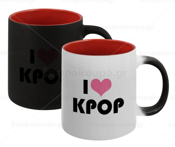 I Love KPOP, Κούπα Μαγική εσωτερικό κόκκινο, κεραμική, 330ml που αλλάζει χρώμα με το ζεστό ρόφημα
