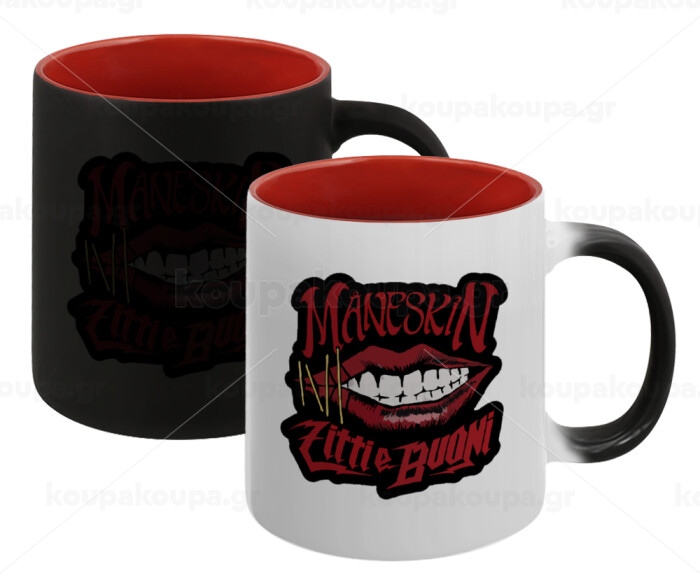 Maneskin lips, Κούπα Μαγική εσωτερικό κόκκινο, κεραμική, 330ml που αλλάζει χρώμα με το ζεστό ρόφημα