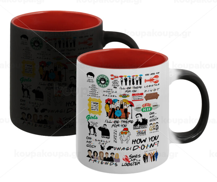 Friends, Κούπα Μαγική εσωτερικό κόκκινο, κεραμική, 330ml που αλλάζει χρώμα με το ζεστό ρόφημα