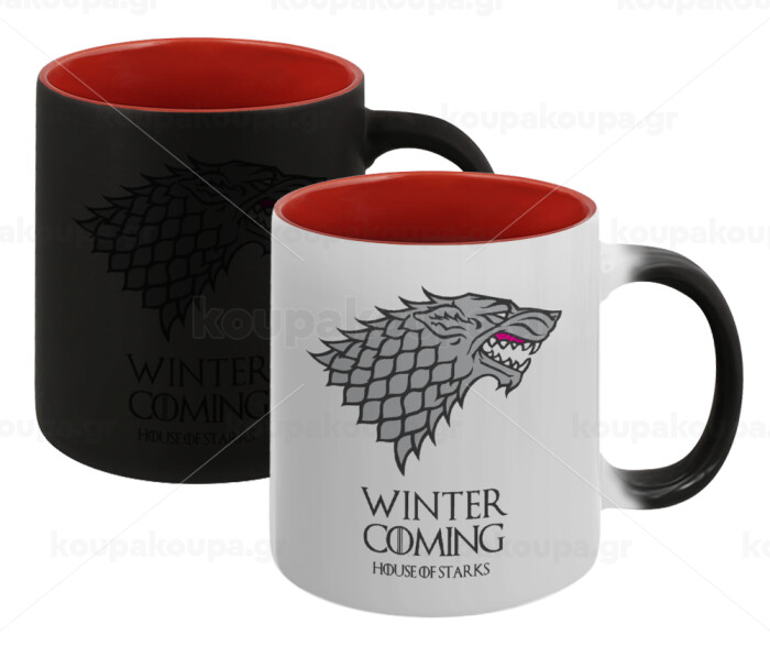 GOT House of Starks, winter coming, Κούπα Μαγική εσωτερικό κόκκινο, κεραμική, 330ml που αλλάζει χρώμα με το ζεστό ρόφημα