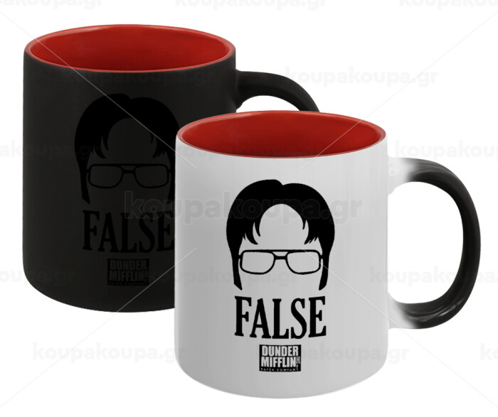 The office Dwight false, Κούπα Μαγική εσωτερικό κόκκινο, κεραμική, 330ml που αλλάζει χρώμα με το ζεστό ρόφημα