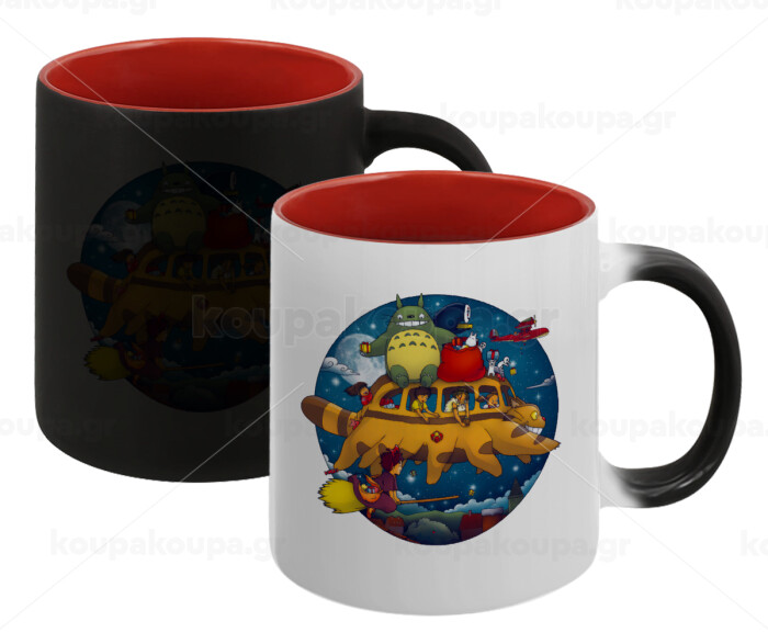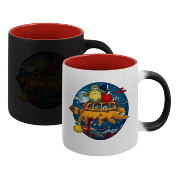 Totoro Catbus, Κούπα Μαγική εσωτερικό κόκκινο, κεραμική, 330ml που αλλάζει χρώμα με το ζεστό ρόφημα