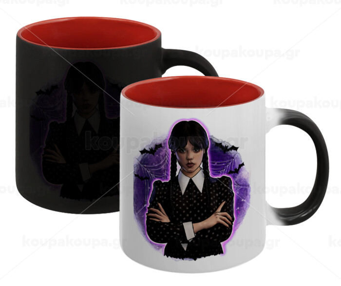 Wednesday moonlight, Κούπα Μαγική εσωτερικό κόκκινο, κεραμική, 330ml που αλλάζει χρώμα με το ζεστό ρόφημα