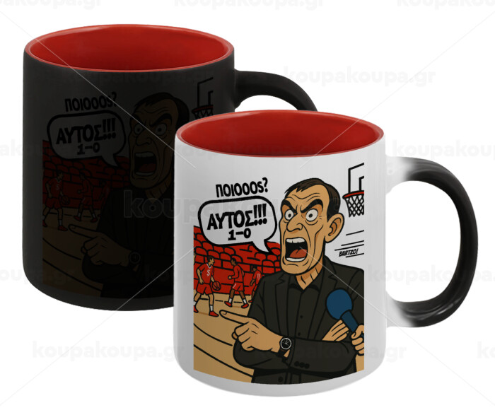 Μπαρτζό, Ποιος? Αυτός!!! 1-0, Κούπα Μαγική εσωτερικό κόκκινο, κεραμική, 330ml που αλλάζει χρώμα με το ζεστό ρόφημα