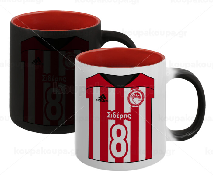 Ολυμπιακός εμφάνιση, Κούπα Μαγική εσωτερικό κόκκινο, κεραμική, 330ml που αλλάζει χρώμα με το ζεστό ρόφημα