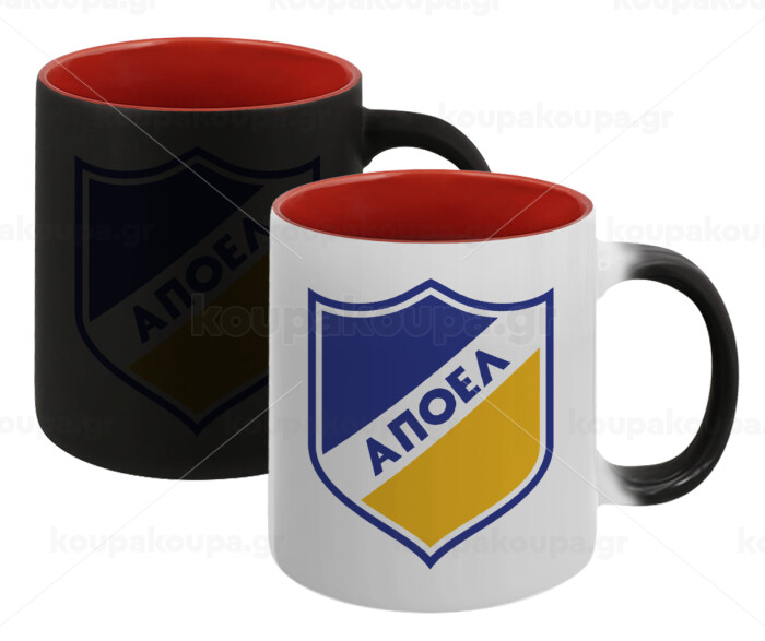 FC ΑΠΟΕΛ Λευκωσίας, Κούπα Μαγική εσωτερικό κόκκινο, κεραμική, 330ml που αλλάζει χρώμα με το ζεστό ρόφημα
