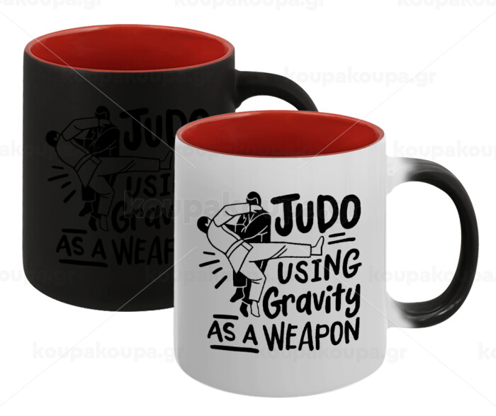 Judo using gravity as a weapon, Κούπα Μαγική εσωτερικό κόκκινο, κεραμική, 330ml που αλλάζει χρώμα με το ζεστό ρόφημα