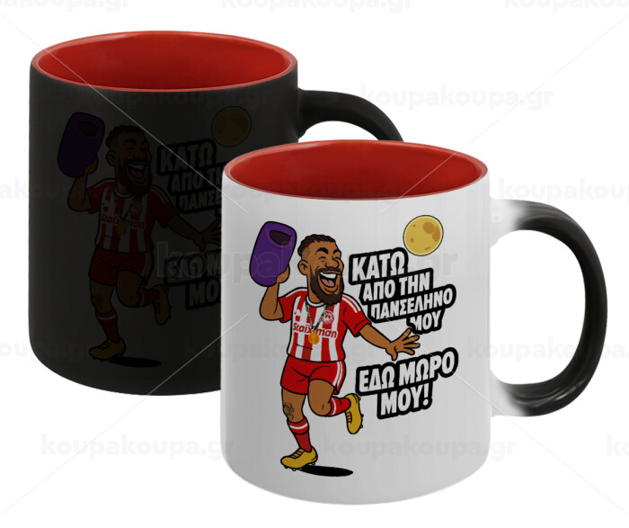 Ροντινέι, "ΚΑΤΩ ΑΠΟ ΤΗΝ ΠΑΝΣΕΛΗΝΟ ΜΟΥ!", Κούπα Μαγική εσωτερικό κόκκινο, κεραμική, 330ml που αλλάζει χρώμα με το ζεστό ρόφημα