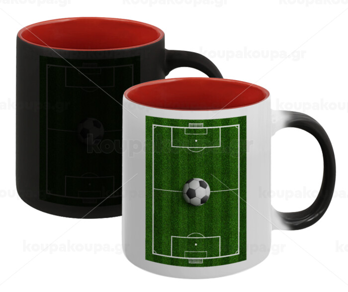 Soccer field, Γήπεδο ποδοσφαίρου, Κούπα Μαγική εσωτερικό κόκκινο, κεραμική, 330ml που αλλάζει χρώμα με το ζεστό ρόφημα