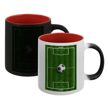 Soccer field, Γήπεδο ποδοσφαίρου, Κούπα Μαγική εσωτερικό κόκκινο, κεραμική, 330ml που αλλάζει χρώμα με το ζεστό ρόφημα