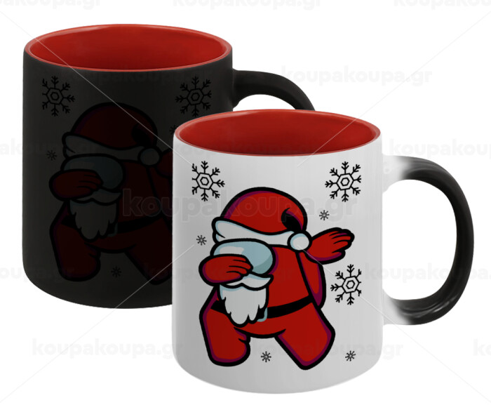 Among US Xmas, Κούπα Μαγική εσωτερικό κόκκινο, κεραμική, 330ml που αλλάζει χρώμα με το ζεστό ρόφημα