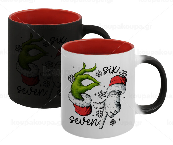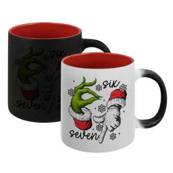 Christmas Meme SIX SEVEN (67), Κούπα Μαγική εσωτερικό κόκκινο, κεραμική, 330ml που αλλάζει χρώμα με το ζεστό ρόφημα