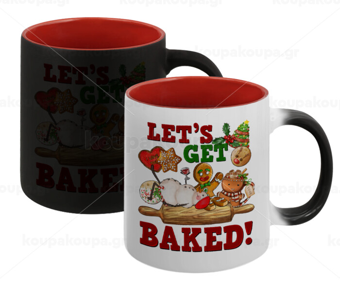 Let's get baked, Κούπα Μαγική εσωτερικό κόκκινο, κεραμική, 330ml που αλλάζει χρώμα με το ζεστό ρόφημα