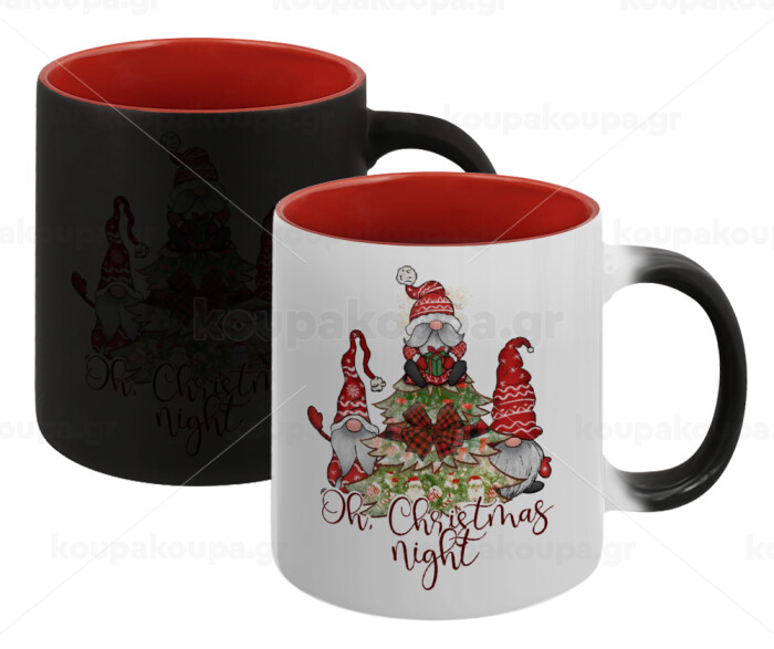 Oh Christmas Night, Κούπα Μαγική εσωτερικό κόκκινο, κεραμική, 330ml που αλλάζει χρώμα με το ζεστό ρόφημα