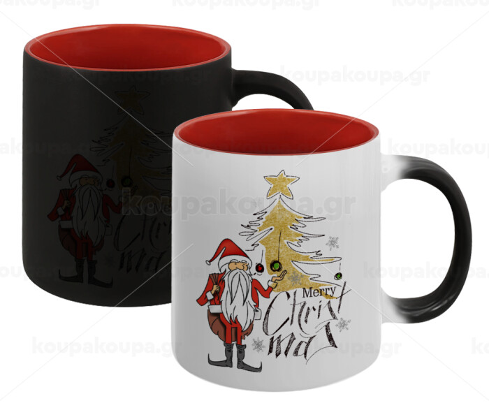 Santa Claus gold, Κούπα Μαγική εσωτερικό κόκκινο, κεραμική, 330ml που αλλάζει χρώμα με το ζεστό ρόφημα