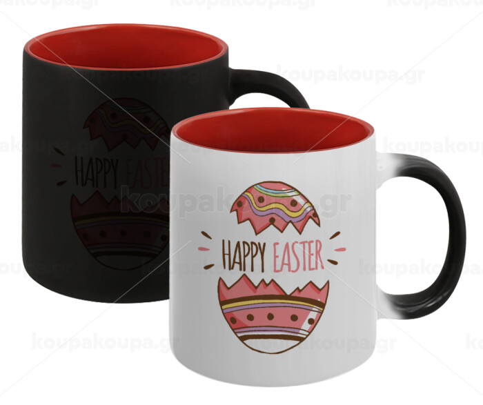 Happy easter egg, Κούπα Μαγική εσωτερικό κόκκινο, κεραμική, 330ml που αλλάζει χρώμα με το ζεστό ρόφημα