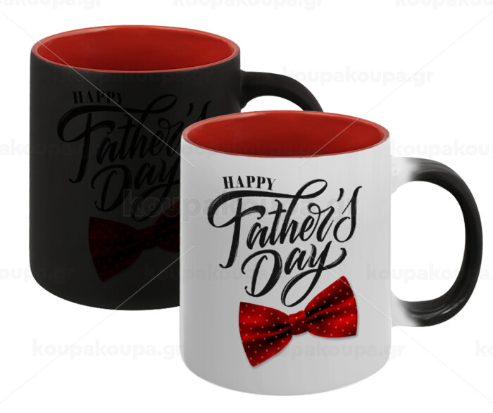 Happy father's Days, Κούπα Μαγική εσωτερικό κόκκινο, κεραμική, 330ml που αλλάζει χρώμα με το ζεστό ρόφημα