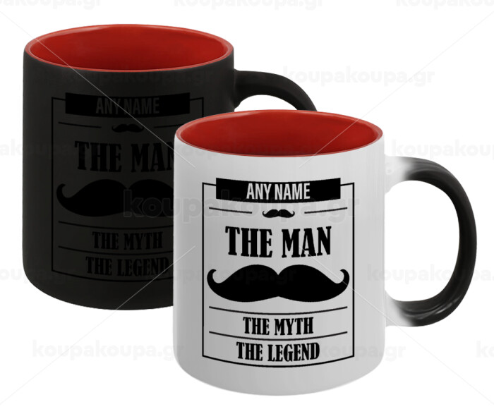 The man, the myth, Κούπα Μαγική εσωτερικό κόκκινο, κεραμική, 330ml που αλλάζει χρώμα με το ζεστό ρόφημα