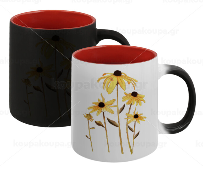Daisies flower, Κούπα Μαγική εσωτερικό κόκκινο, κεραμική, 330ml που αλλάζει χρώμα με το ζεστό ρόφημα