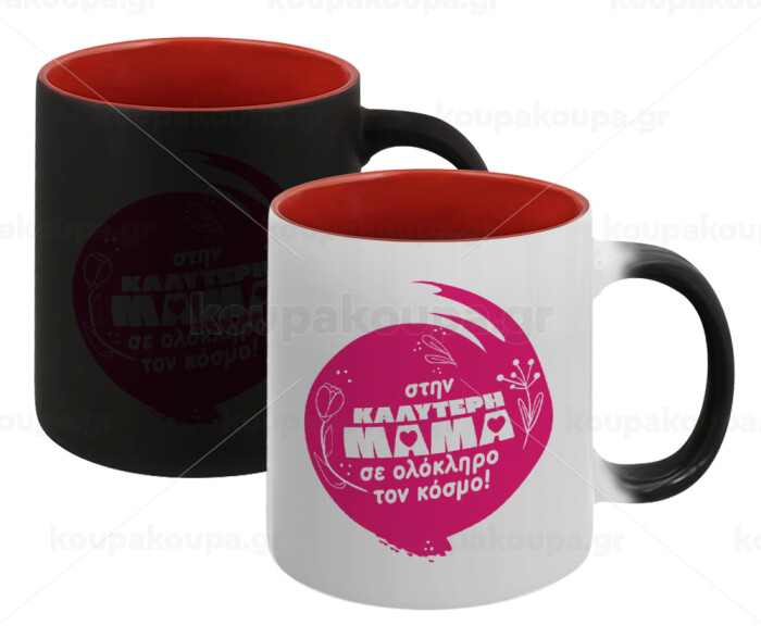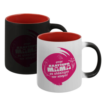 Στην καλύτερη μαμά του κόσμου!, Κούπα Μαγική εσωτερικό κόκκινο, κεραμική, 330ml που αλλάζει χρώμα με το ζεστό ρόφημα