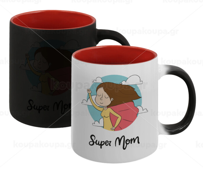 Super mom, Κούπα Μαγική εσωτερικό κόκκινο, κεραμική, 330ml που αλλάζει χρώμα με το ζεστό ρόφημα