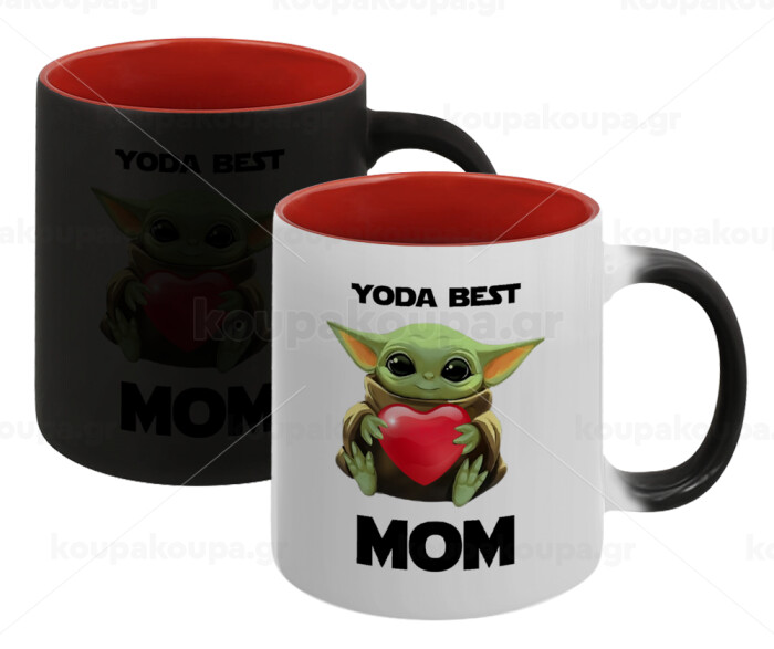 Yoda Best mom, Κούπα Μαγική εσωτερικό κόκκινο, κεραμική, 330ml που αλλάζει χρώμα με το ζεστό ρόφημα