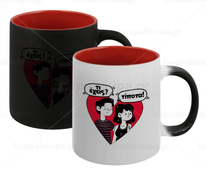 Τι έχεις? Τίποτα!, Κούπα Μαγική εσωτερικό κόκκινο, κεραμική, 330ml που αλλάζει χρώμα με το ζεστό ρόφημα