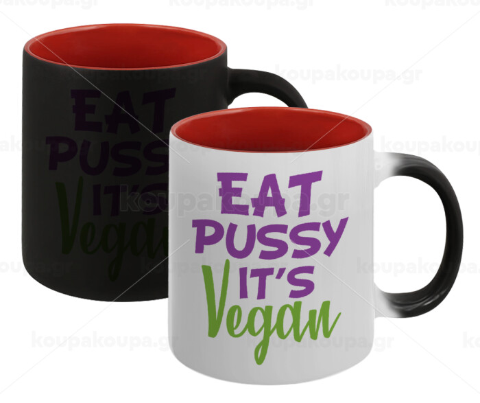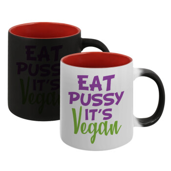 EAT pussy it's vegan, Κούπα Μαγική εσωτερικό κόκκινο, κεραμική, 330ml που αλλάζει χρώμα με το ζεστό ρόφημα