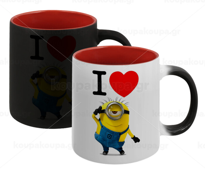 I love by minion, Κούπα Μαγική εσωτερικό κόκκινο, κεραμική, 330ml που αλλάζει χρώμα με το ζεστό ρόφημα