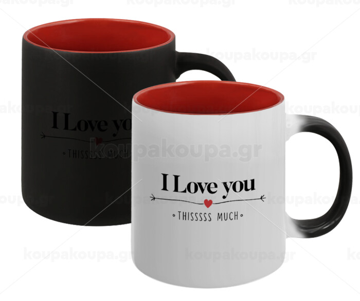 I Love you thisssss much, Κούπα Μαγική εσωτερικό κόκκινο, κεραμική, 330ml που αλλάζει χρώμα με το ζεστό ρόφημα