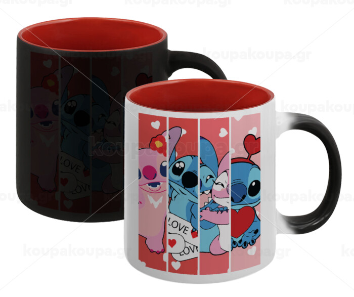 Lilo & Stitch Love, Κούπα Μαγική εσωτερικό κόκκινο, κεραμική, 330ml που αλλάζει χρώμα με το ζεστό ρόφημα