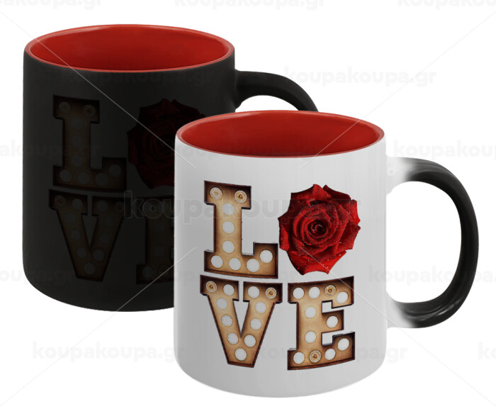 Love lights and roses, Κούπα Μαγική εσωτερικό κόκκινο, κεραμική, 330ml που αλλάζει χρώμα με το ζεστό ρόφημα