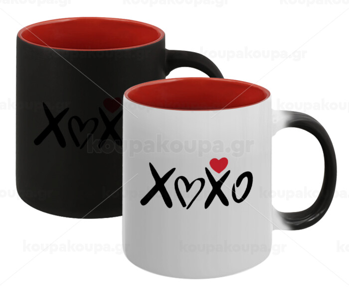 xoxo, Κούπα Μαγική εσωτερικό κόκκινο, κεραμική, 330ml που αλλάζει χρώμα με το ζεστό ρόφημα