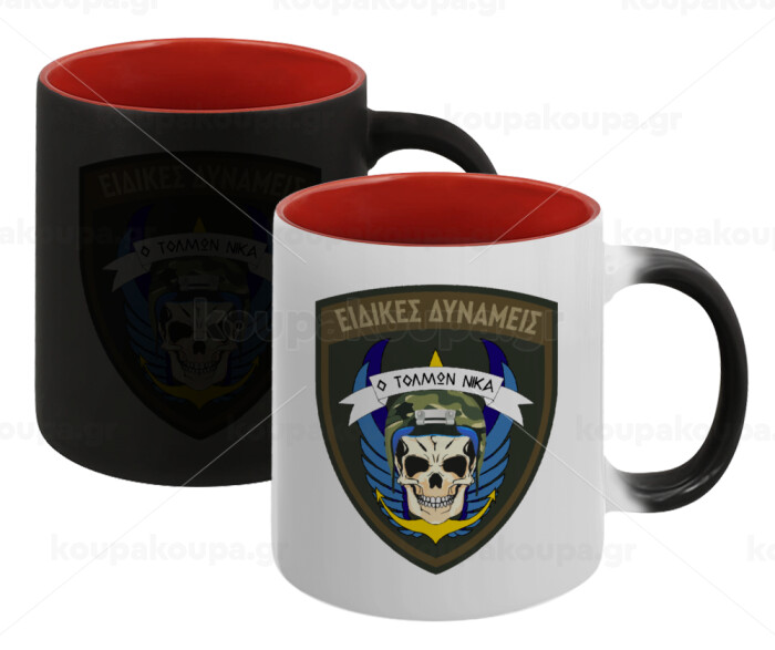 Hellas special force's, Κούπα Μαγική εσωτερικό κόκκινο, κεραμική, 330ml που αλλάζει χρώμα με το ζεστό ρόφημα