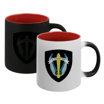 Έμβλημα Μονάδων Καταδρομών Ο Τολμων Νικα - Λοκ, Κούπα Μαγική εσωτερικό κόκκινο, κεραμική, 330ml που αλλάζει χρώμα με το ζεστό ρόφημα