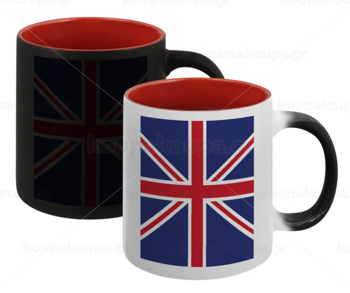 UK Flag, Κούπα Μαγική εσωτερικό κόκκινο, κεραμική, 330ml που αλλάζει χρώμα με το ζεστό ρόφημα