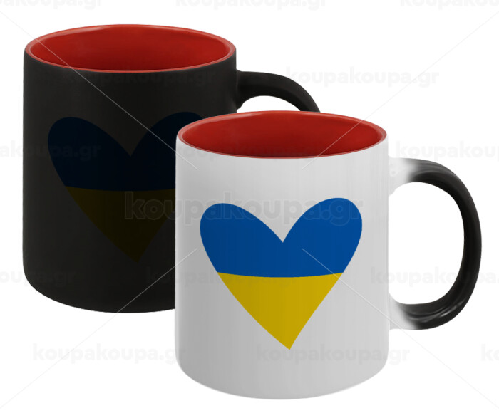 UKRAINE heart, Κούπα Μαγική εσωτερικό κόκκινο, κεραμική, 330ml που αλλάζει χρώμα με το ζεστό ρόφημα