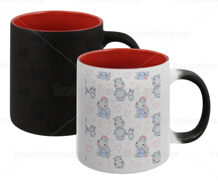 Hippo, Κούπα Μαγική εσωτερικό κόκκινο, κεραμική, 330ml που αλλάζει χρώμα με το ζεστό ρόφημα