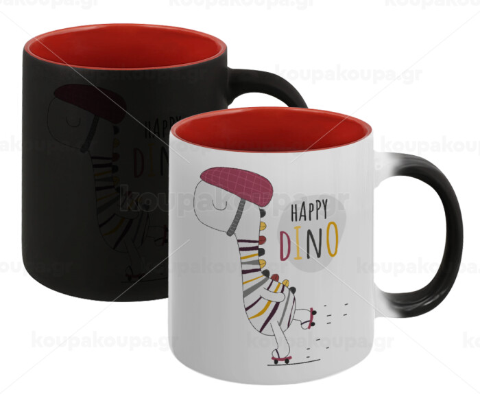 Happy Dino, Κούπα Μαγική εσωτερικό κόκκινο, κεραμική, 330ml που αλλάζει χρώμα με το ζεστό ρόφημα