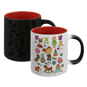 Toys Girl, Κούπα Μαγική εσωτερικό κόκκινο, κεραμική, 330ml που αλλάζει χρώμα με το ζεστό ρόφημα