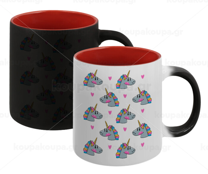 Unicorn, Κούπα Μαγική εσωτερικό κόκκινο, κεραμική, 330ml που αλλάζει χρώμα με το ζεστό ρόφημα